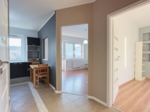 Komfortowe wnętrze mieszkania składa się z przestronnego salonu z wyjściem na balkon oraz sypialni, które zapewnią ci niezbędny komfort życiowy. Widna kuchnia to idealne miejsce do przygotowywania posiłków, a łazienka oraz przedpokój z funkcjonalnymi szafami typu Komandor podnoszą poziom wygody. Przynależna komórka lokatorska zapewnia dodatkową przestrzeń do przechowywania np. rowerów. Mieszkanie jest częściowo umeblowane, z możliwością aranżacji według własnego uznania, co daje swobodę personalizacji przestrzeni.